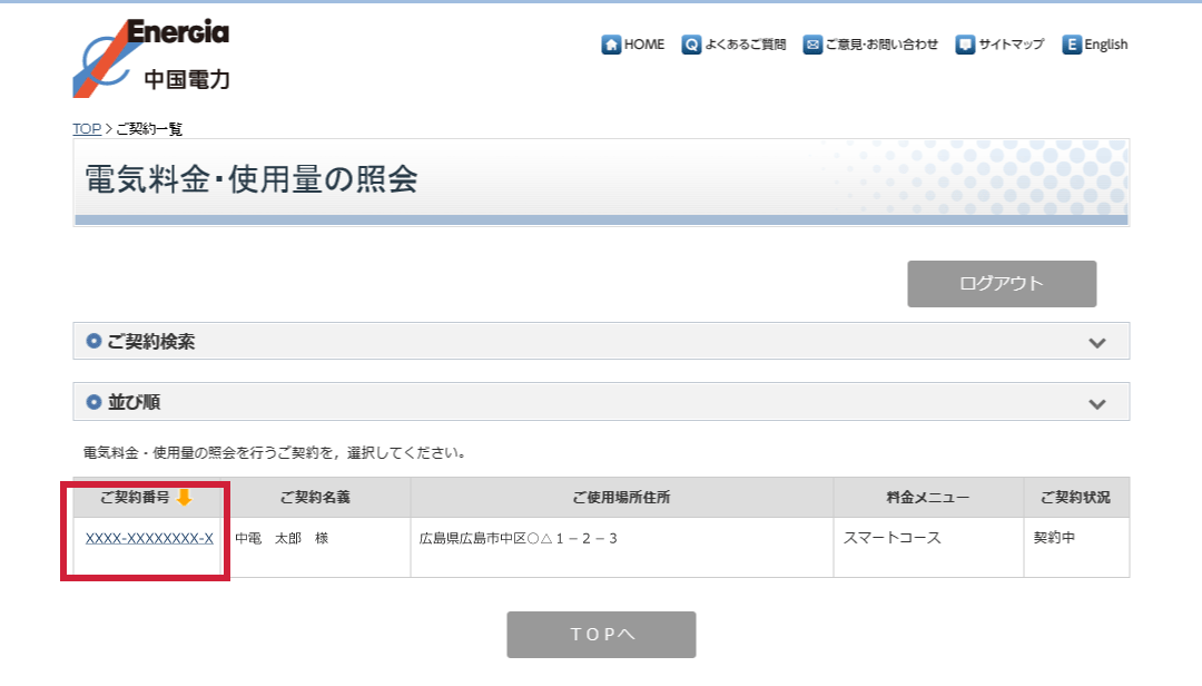 申込フォーム内で、電気のご契約情報(ご契約番号、ご契約種別名、ご契約名義、ご使用場所住所等)のご入力が必要となります。